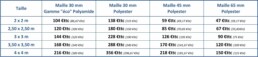 - Filets Sac : cousus sur 3 côtés et renforcés par une ralingue de 6 mm sur le côté. Rabat de 30 cm pour faciliter la fermeture.